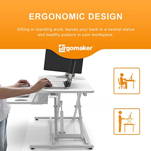 【RECHTE UP & DOWN AANPASSING】Ergomaker-computer stijgt en vouwt verticaal van 13,5 cm tot 52 cm (5,3 inch tot 20,5 inch). Pas aan op het juiste comfortniveau in gemakkelijke soepele beweging met gasveerkracht, en blijf het bij hoogte vergrendelingsmechanisme.